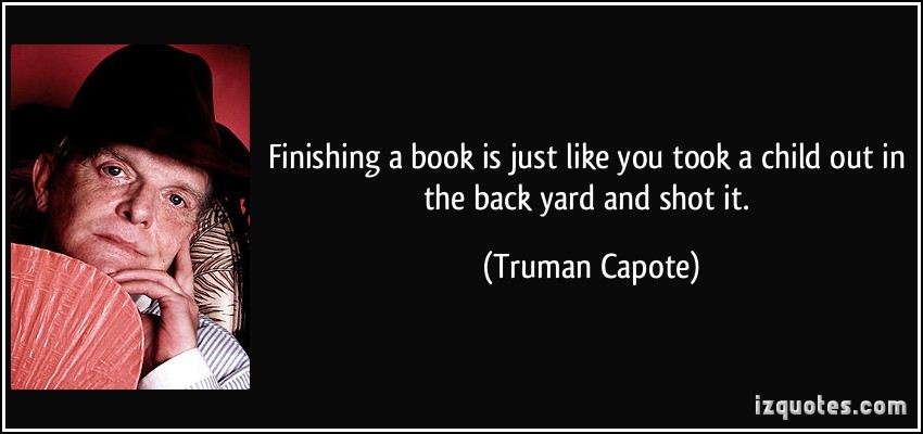 Truman Capote said finishing a story is like taking your child out in the back yard and shooting it.