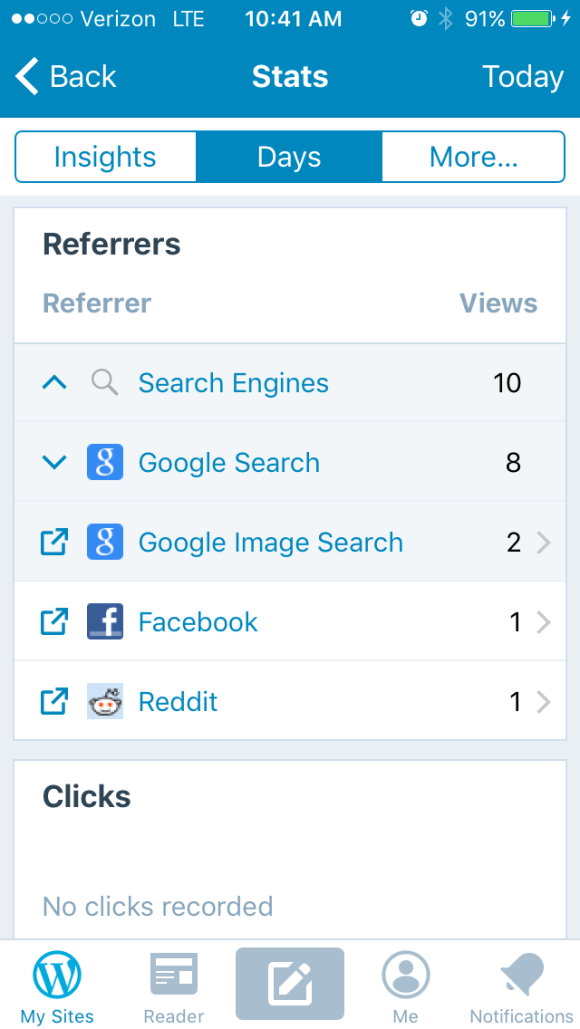 Yesterday, I had a decent number of views, the topic was one I had not posted about in a while, and the eyeballs came from search engines.